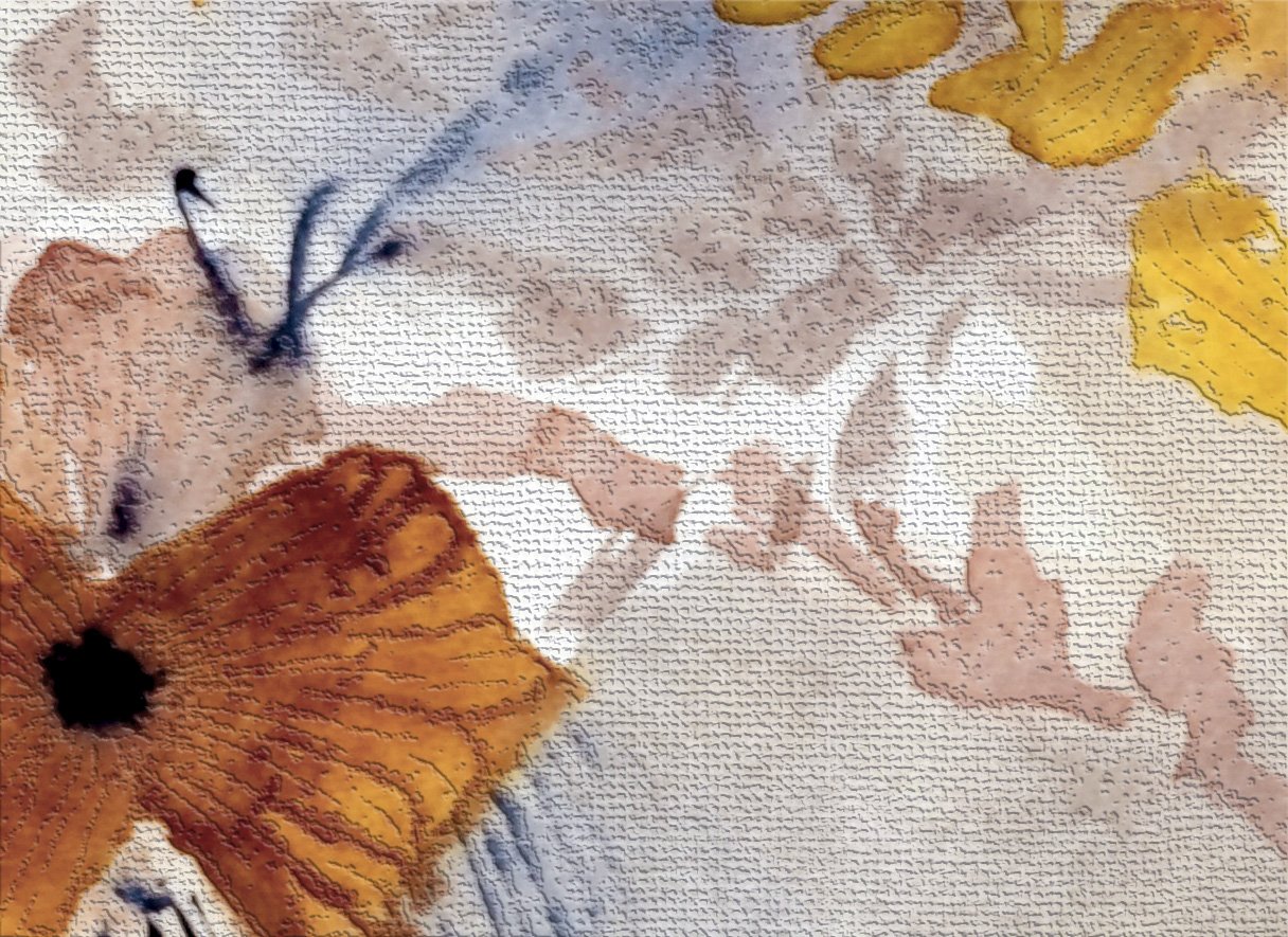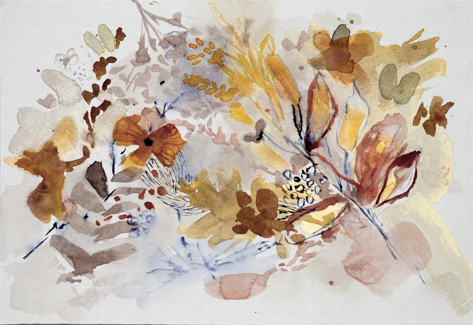 Organski oblici nježno se kreću u toplim nijansama žute, smeđe i terakote donoseći mekoću bez gubitka strukture.