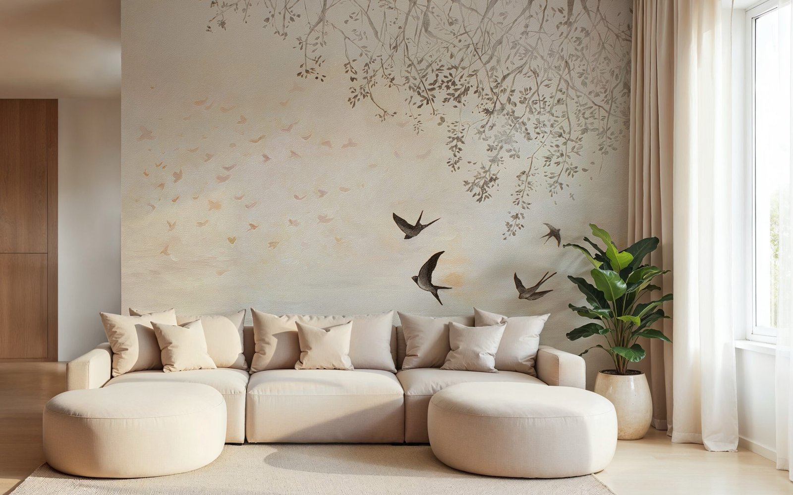 Ovaj dizajn podržava kreativnost i osjećaj uzdignutosti. Suptilno osvježava raspoloženje i podsjeća da ideje nemaju jasne granice, čak ni nebo. Ptice vode pogled i daju prostoru više širine.