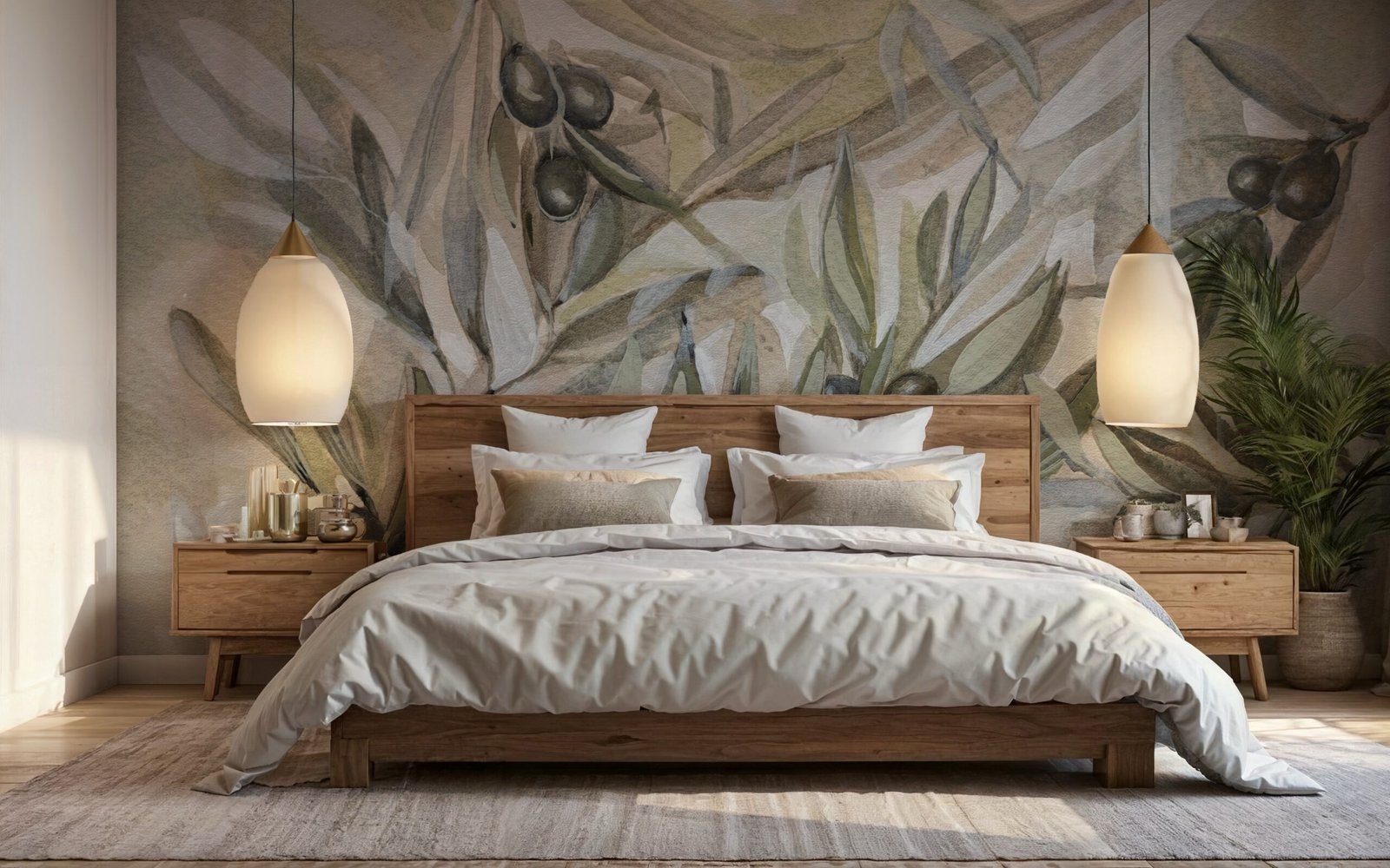 Dizajn prenosi taj osjećaj u interijer. Listovi i plodovi raspoređeni su mirno i prirodno, bez naglašavanja. Paleta je topla, zemljana, poput kamena, sunca i prašine na putu kroz maslinik.