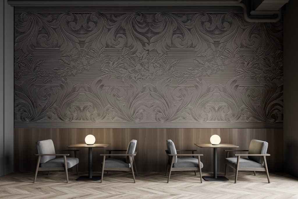 Ideja je bila stvoriti prostor koji će gostima ostati u sjećanju. Odabrali smo Rococo Decor 3D tapete s apstraktnim reljefnim motivima za glavnu zidnu površinu. Efekt pod svjetlom bio je izvanredan – sofisticiran, ali nenametljiv. Savršen spoj dizajna i funkcionalnosti.